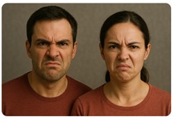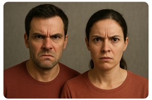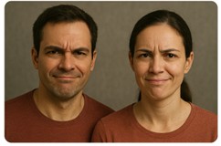 Bemærk: Ansigtsudtryk på viste billeder er meget ekstrem. Vær meget opmærksom på, at for det meste ses disse ansigtsudtryk som 'Mikroudtryk'. Dvs. meget små antydninger. Betydningen er den samme.