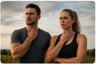 Berøring af forsiden af halsen.
